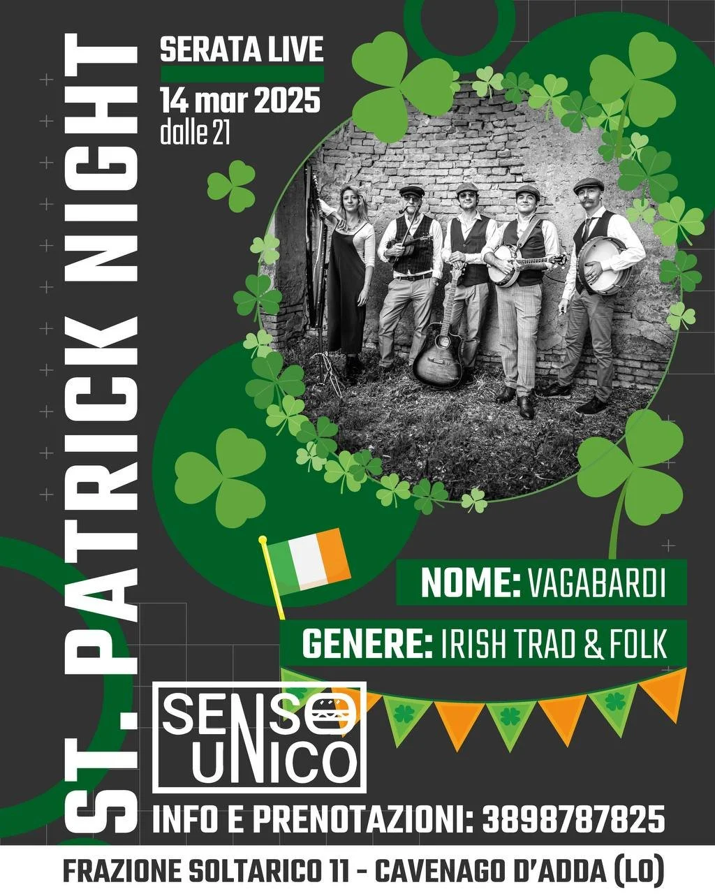 Musica tradizionale irlandese con la band Vagabardi, per festeggiare insieme San Patrizio tra danze, canzoni e qualche birra!