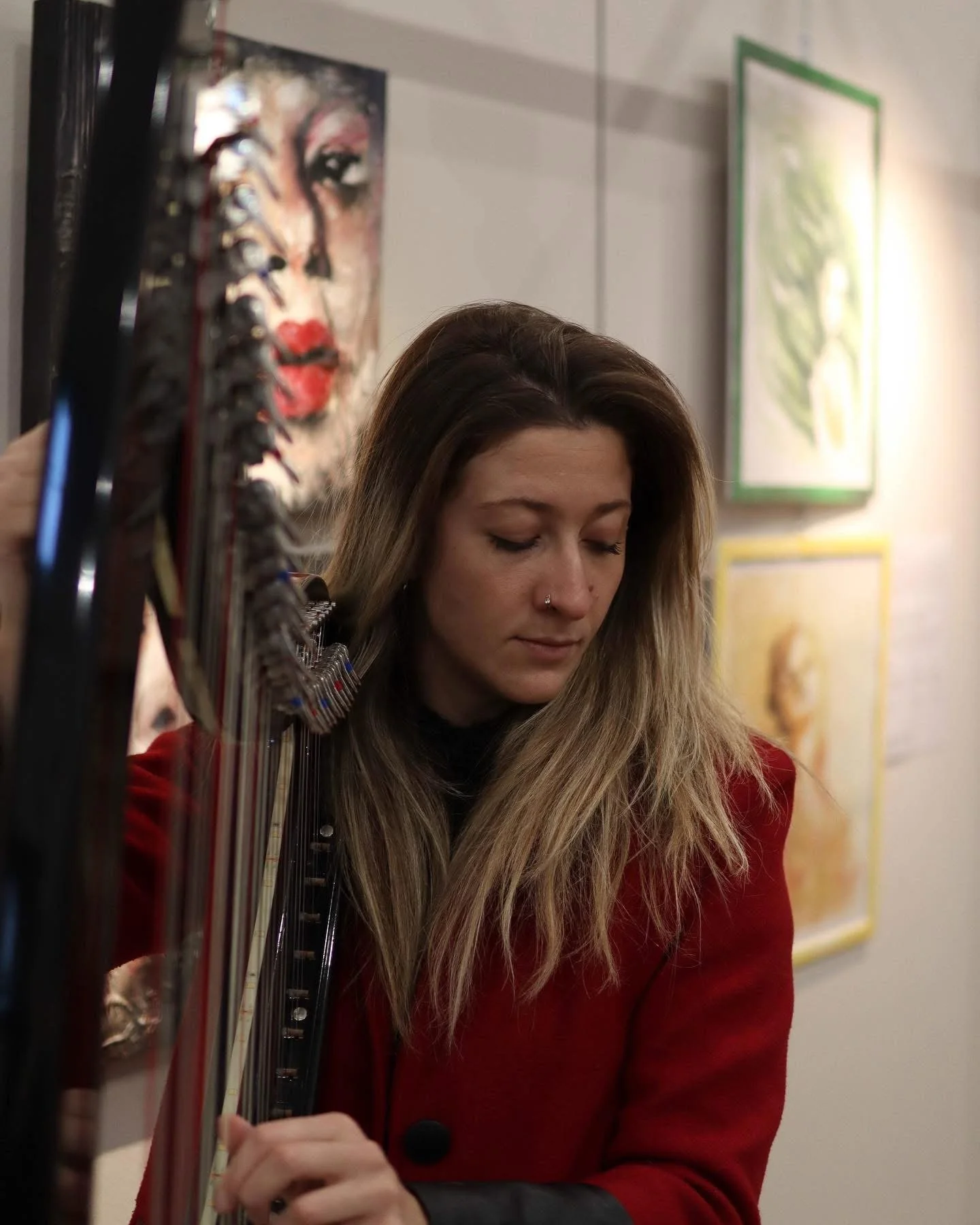 Performance di arpa elettrica in apertura all’evento della banca Mediolanum preso la concessionaria Gruppo Autotorino di Crema.
