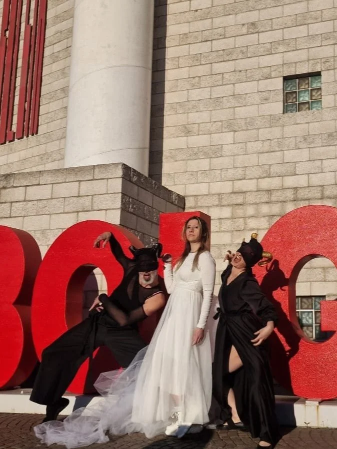 Performance con danzatori Butoh in apertura della serata di Fatima Hajji alla discoteca Bolgia.